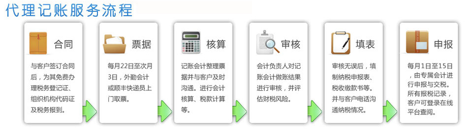 代理記帳服務(wù)方式分客戶送達和上門服務(wù)二種,其中:客戶送達是客戶將準備的原始資料和票據(jù)送到鎮(zhèn)江華德天誠財務(wù)咨詢有限公司或由我公司人員去客戶處取資料,由我公司進行記帳、報稅工作。